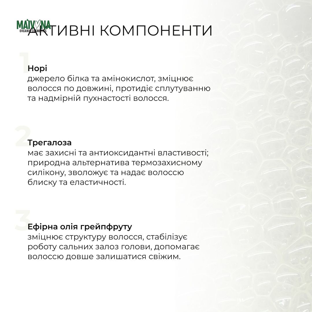 Восстановительная маска питает волосы от корней до кончиков, уменьшая ломкость и не утяжеляя локоны. Она помогает сохранить естественную силу волос, делая их более здоровыми и блестящими.