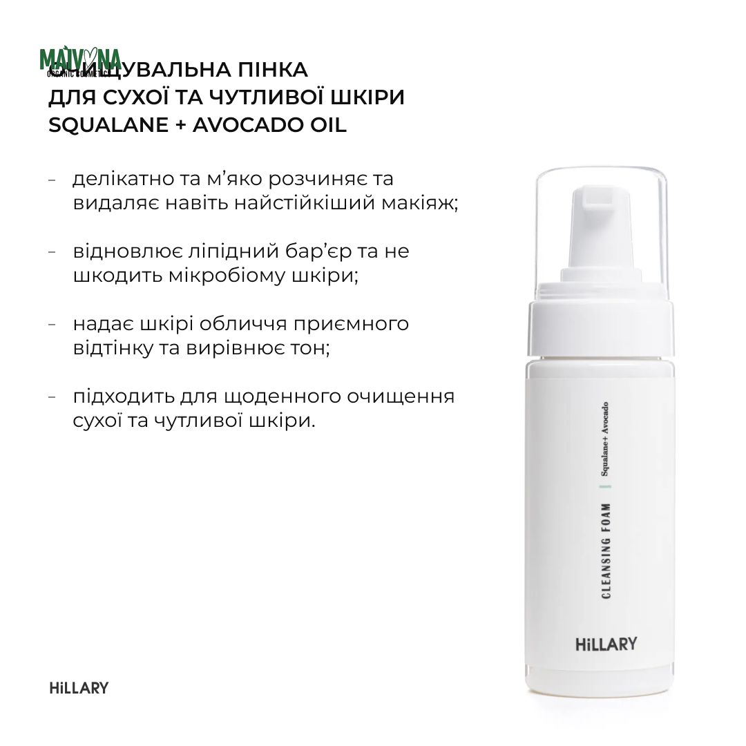 - Очищающая пенка для сухой и чувствительной кожи Hillary Cleansing Foam Squalane + Avocado oil, 150 мл