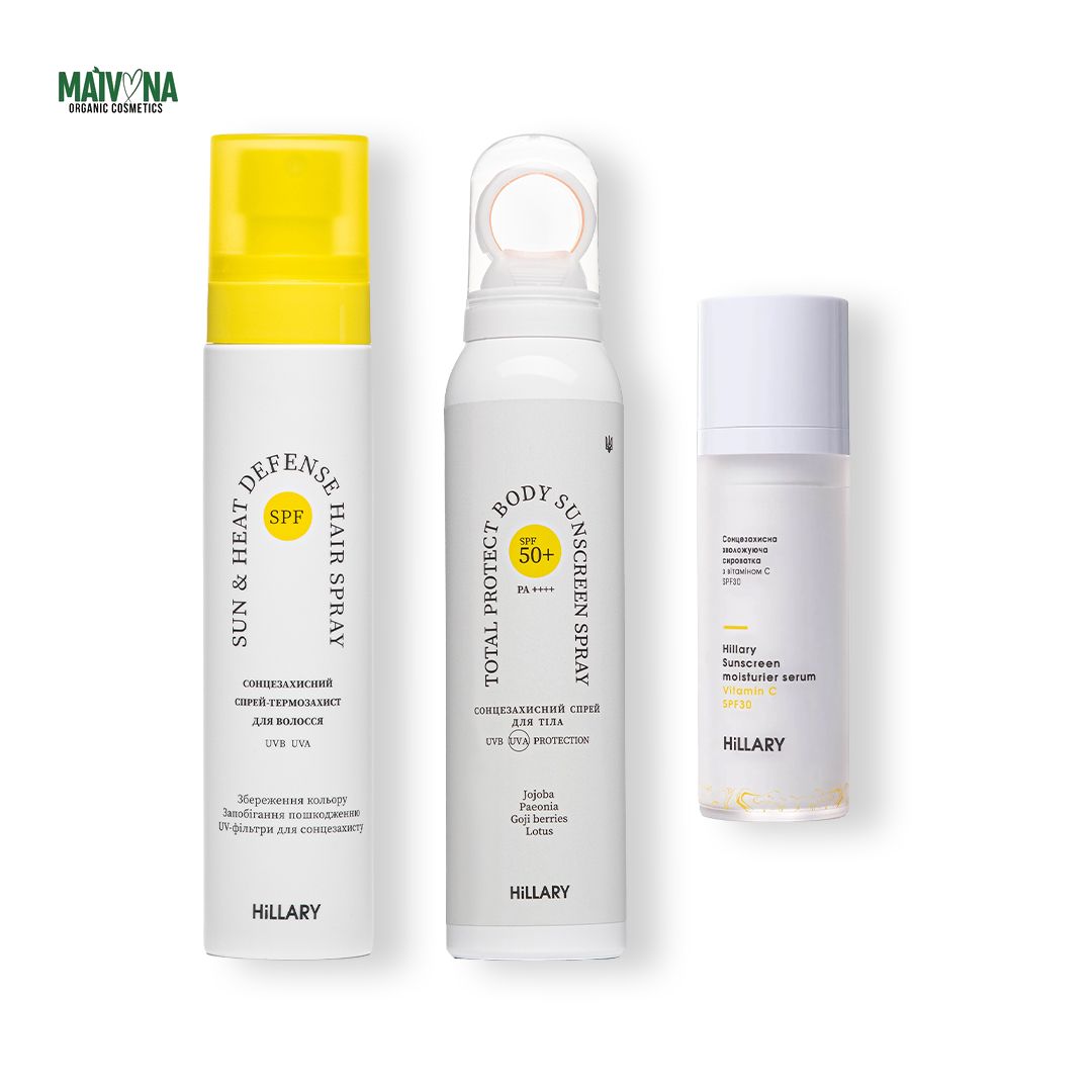 - Солнцезащитный спрей SPF 50+ Hillary Total Protect Body Sunscreen Spray, 150 мл