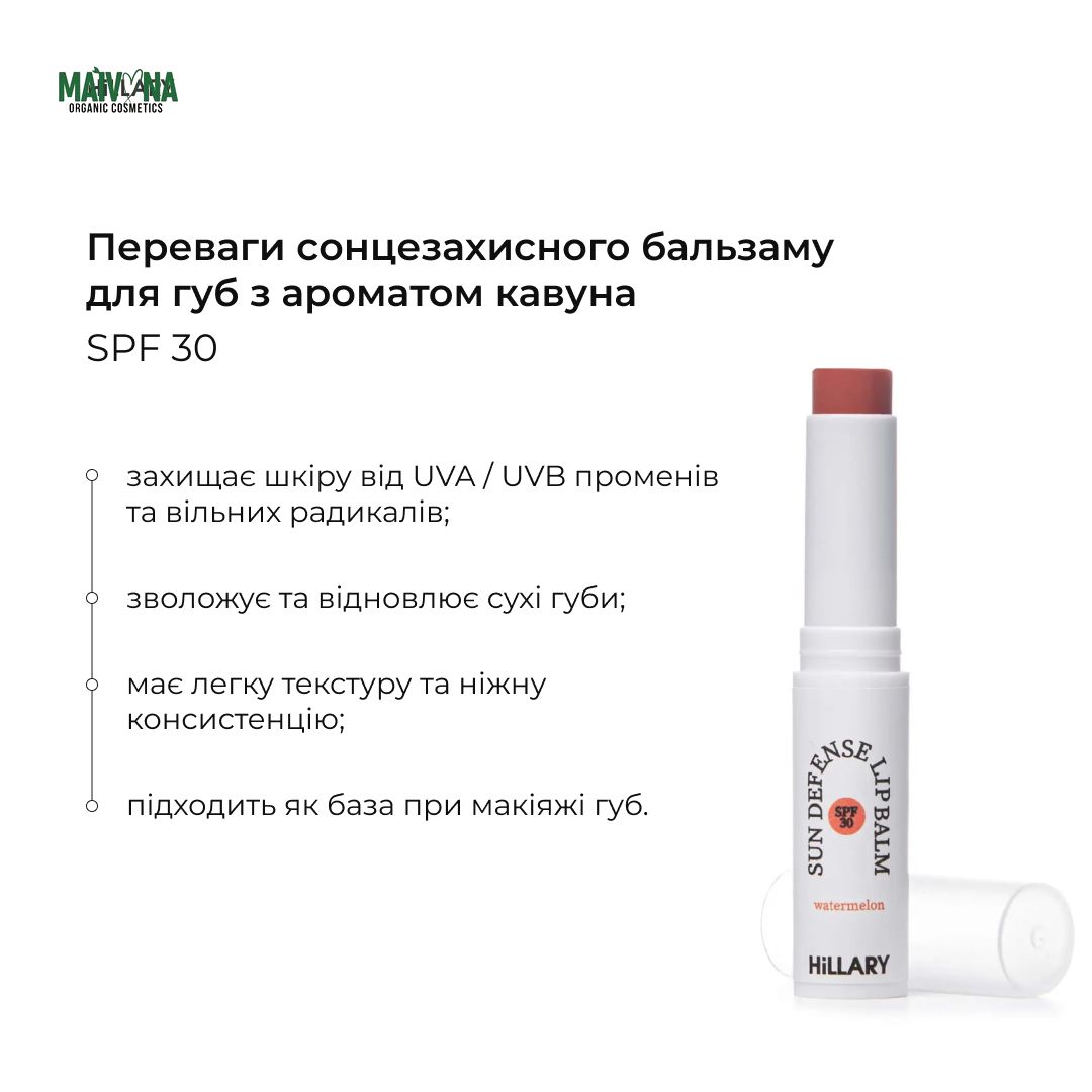 - Солнцезащитный бальзам для губ Арбуз SPF 30 Hillary Sun Defense Lip Balm Watermelon, 3 г