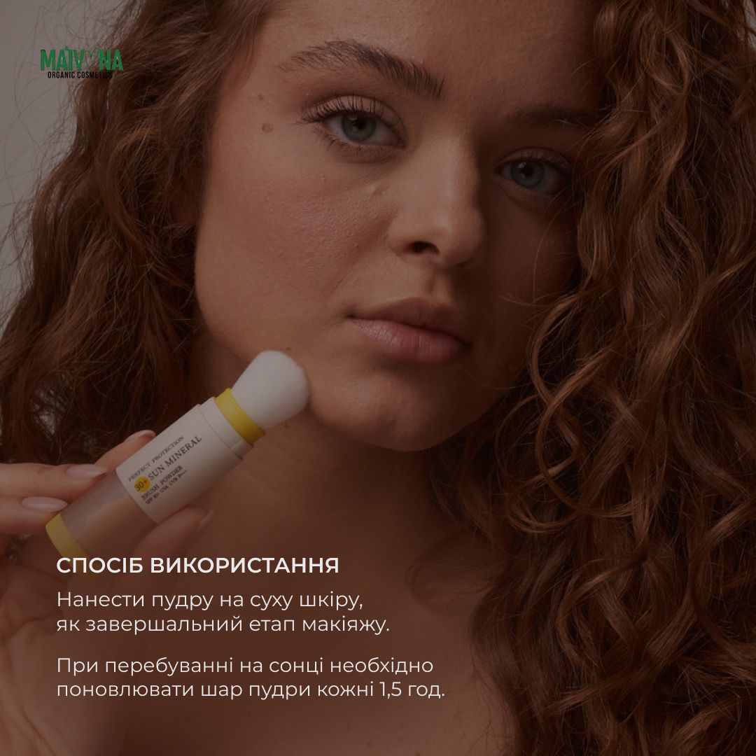 - Минеральную пудру наносите на сухую кожу лица как завершающий этап макияжа. Для поддержки защиты обновляйте пудру каждые 1,5 часа во время активного солнца.