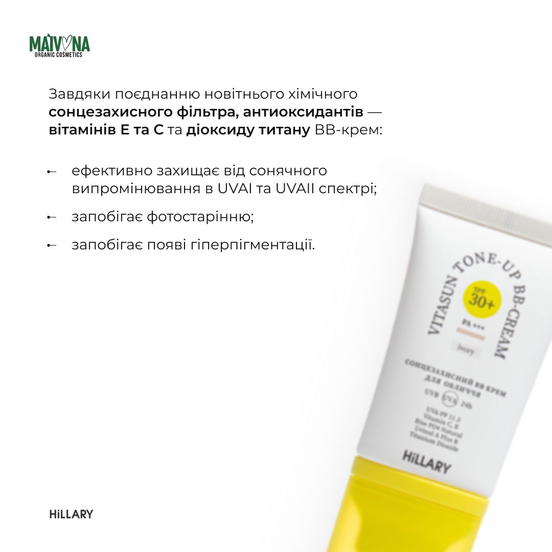 - Солнцезащитный BB крем для лица SPF 30+ Ivory HiLLARY VitaSun Tone-Up BB Cream All Day Protect, 40 мл